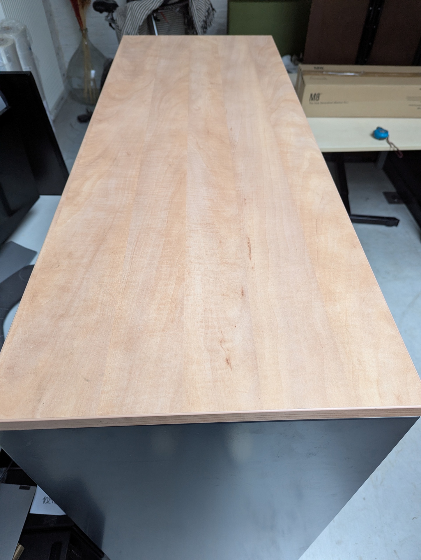 - metalen kast - kleur antraciet / zwart - kunststof roldeuren - houten topblad - 3 legplanken - zonder sleutel - 4 instelbare voetjes