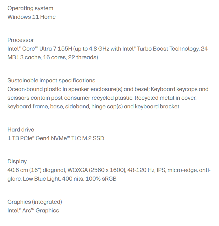 Intel Core Ultra 7 155H - 16GB RAM - 1TB SSD - Windows 11 Home - AZERTY BE - WQXGA 2560x1600 16" scherm - 2j fabrieksgarantie