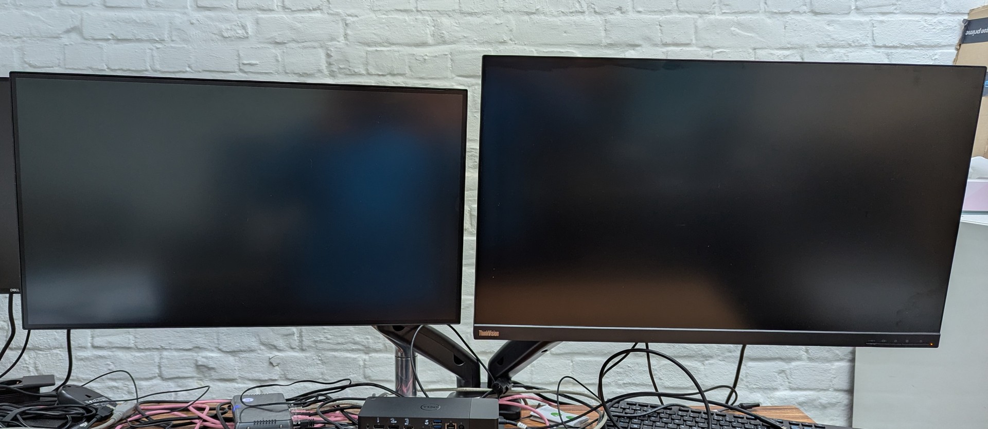 Op de fotos met een 27" en 32" scherm.
