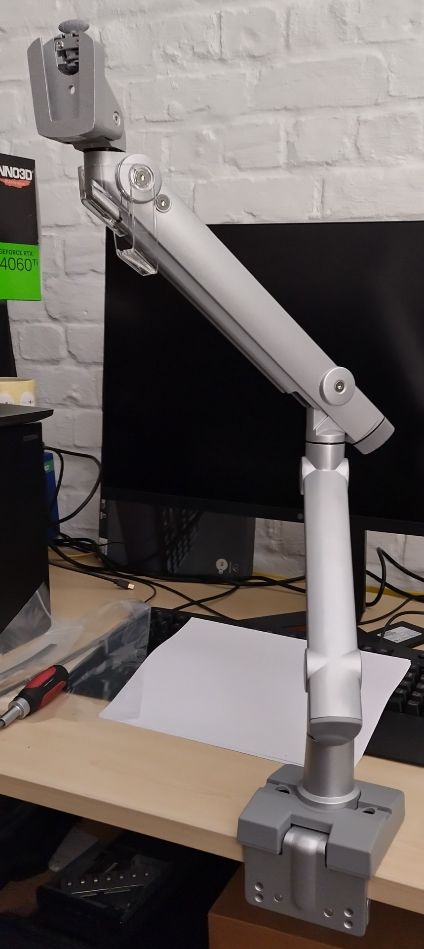 Zeer stevige monitor-arm voor 1 scherm (tot 32inch / op de foto met 27inch). Nieuw in doos. Ongebruikt. Winkelprijs > 200 EUR! 9 stuks beschikbaar