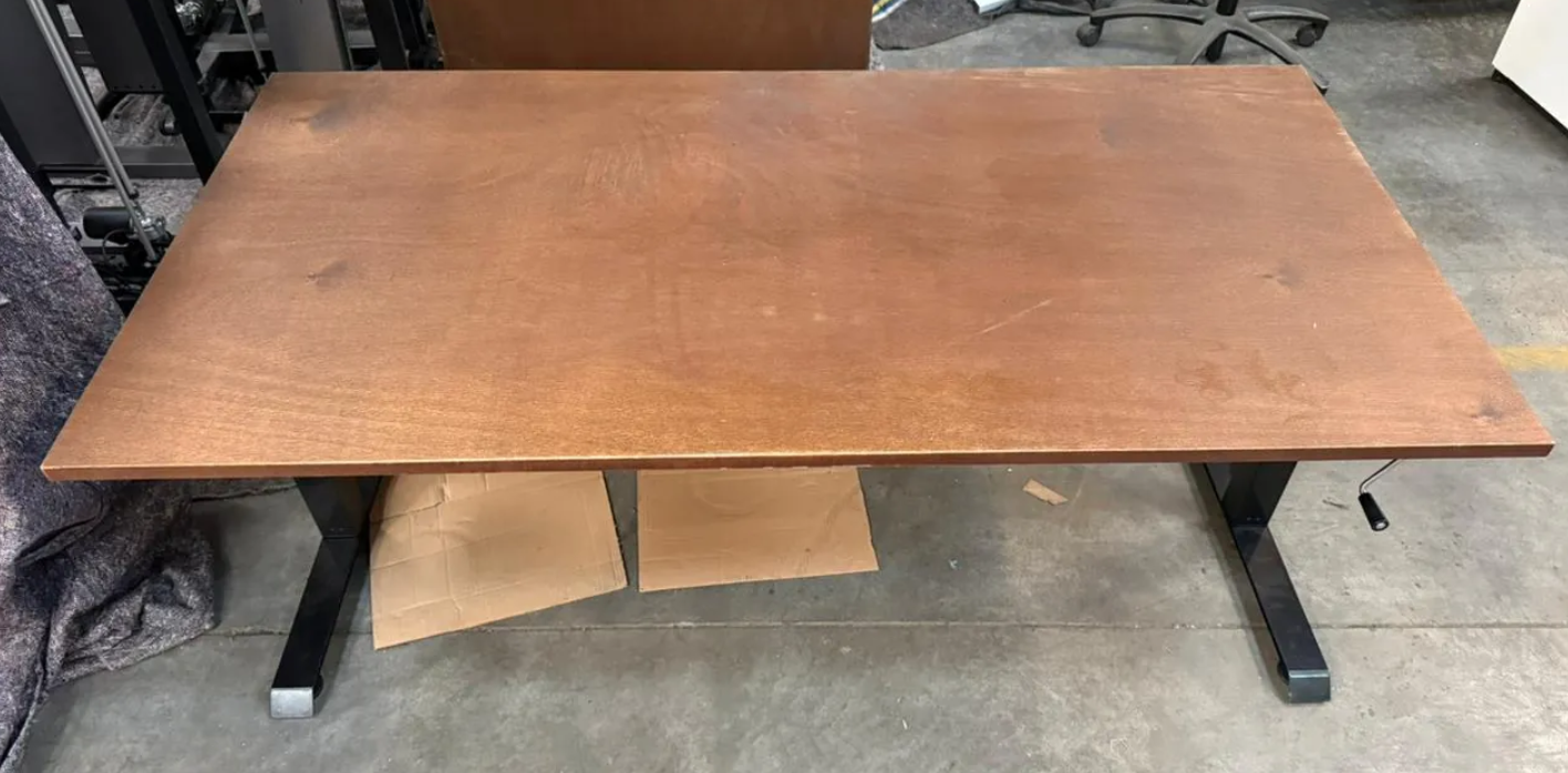Stevige constructie met eenvoudig houten tafelblad - laatste stuk
